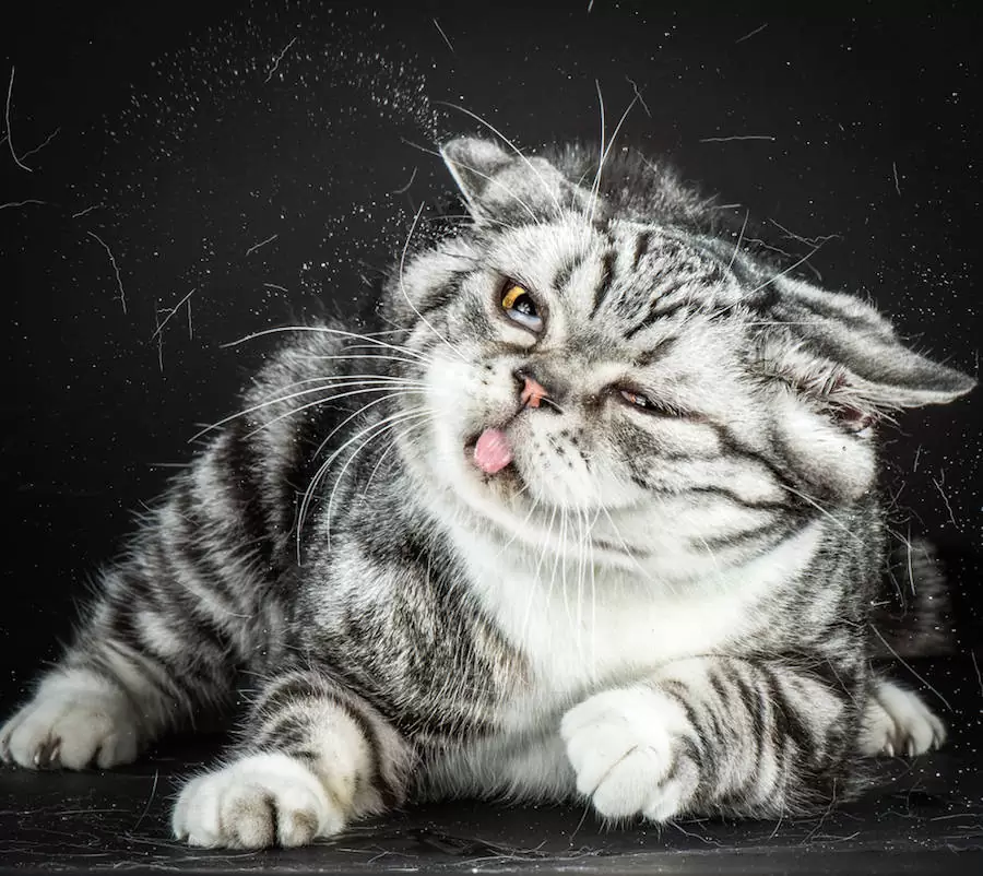 Une série de clichés hilarantes réalisées par le photographe américaine Carli Davidson. Des photographies où il a immortalisé des félins à un moment bien précis, c’est à dire en train de se secouer les poils … Le résultat final est une explosion de grimaces, de fourrure et de bave.