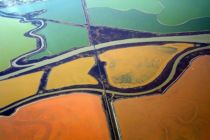 Focus sur la série de clichés Saltscapes, décliné en livre, réalisé par le photographe Cris Benton. Des photographies aériens des marais salants de South Bay, au sud de la baie